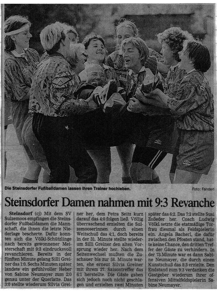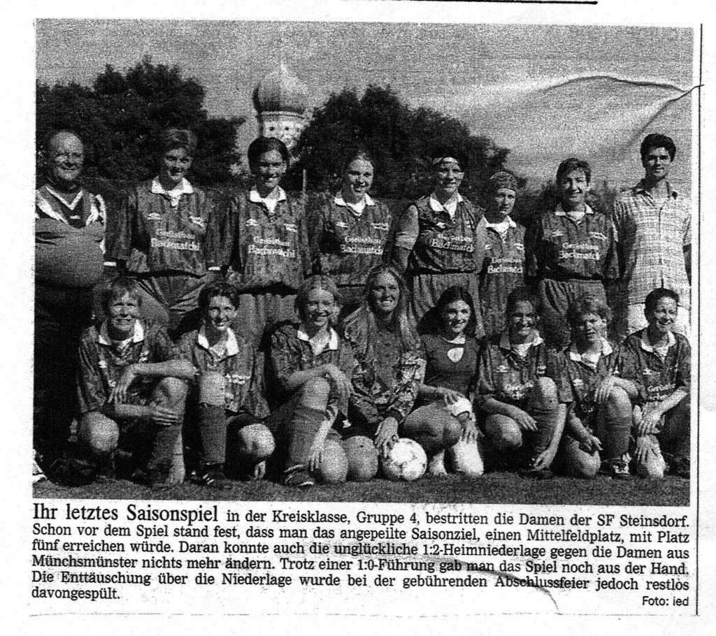 im August 1993 berichtete auch der DONAU KURIER über die fußballbegeisterten Steinsdorferinnen