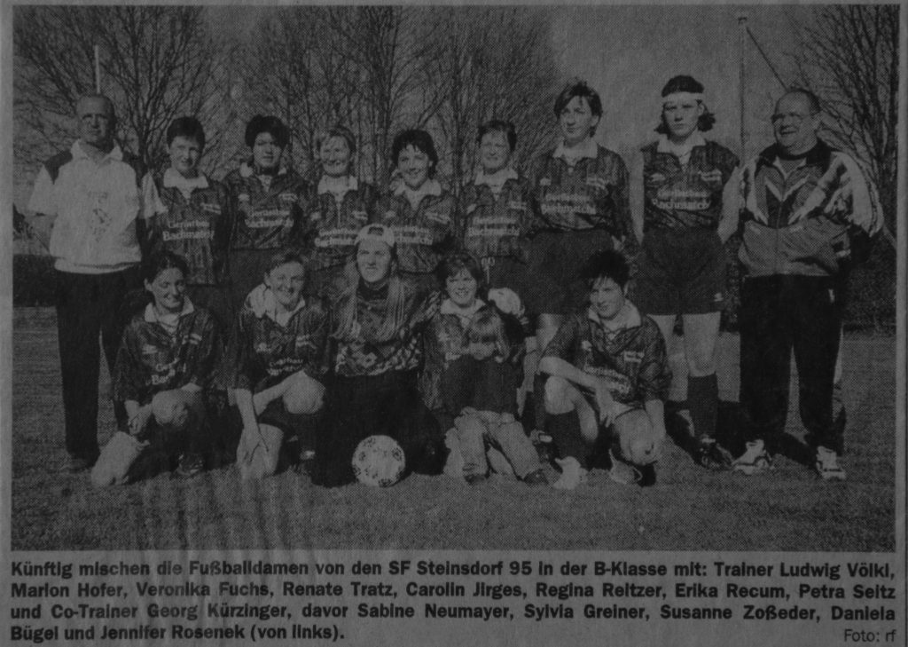 Der Grundstein für den Steinsdorfer Damenfußball wurde in einem Gaudispiel zwischen einer Damenmannschaft der Landjugend und einem Damenteam vom Stammtisch Goldene Glocke gelegt.